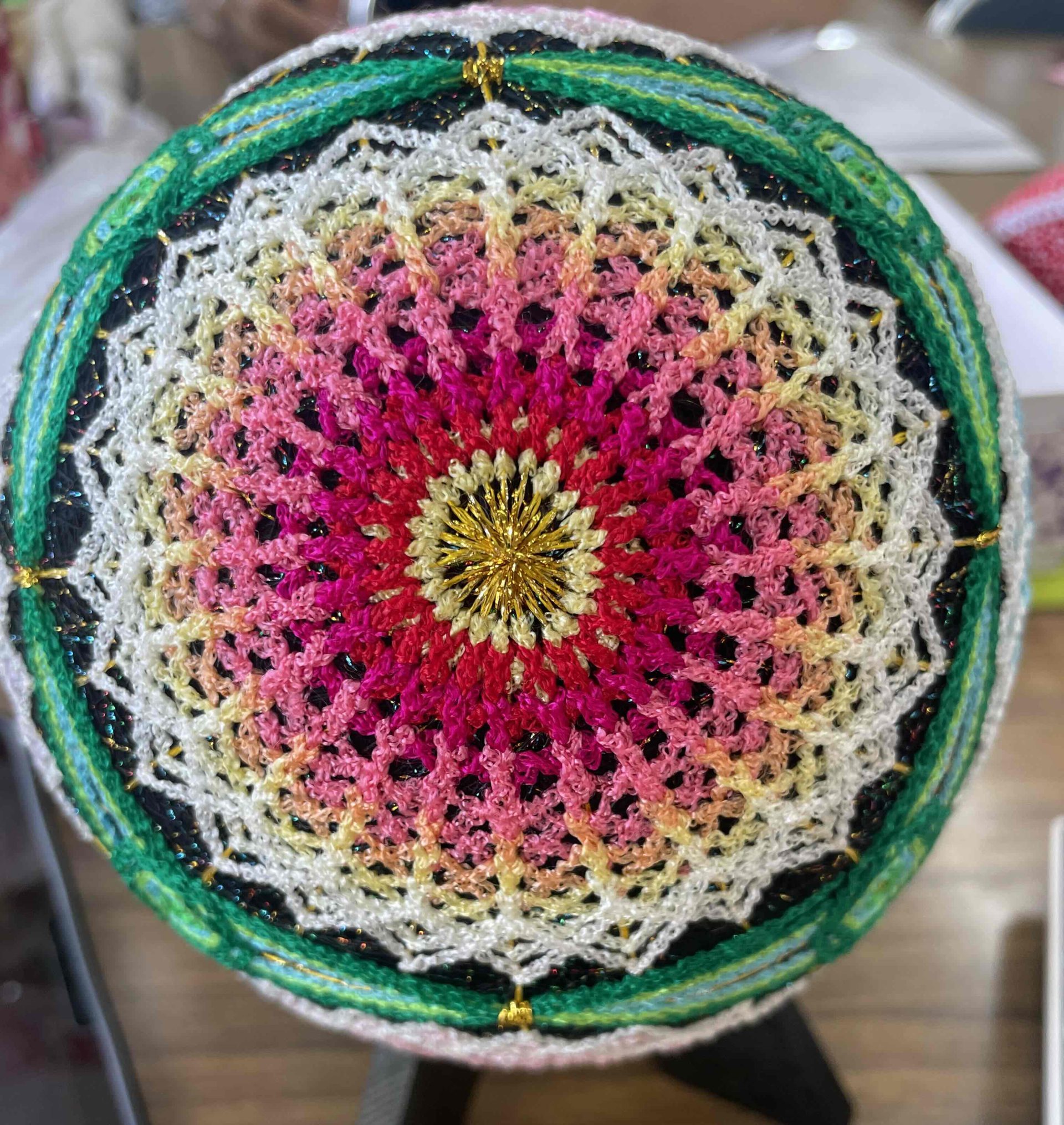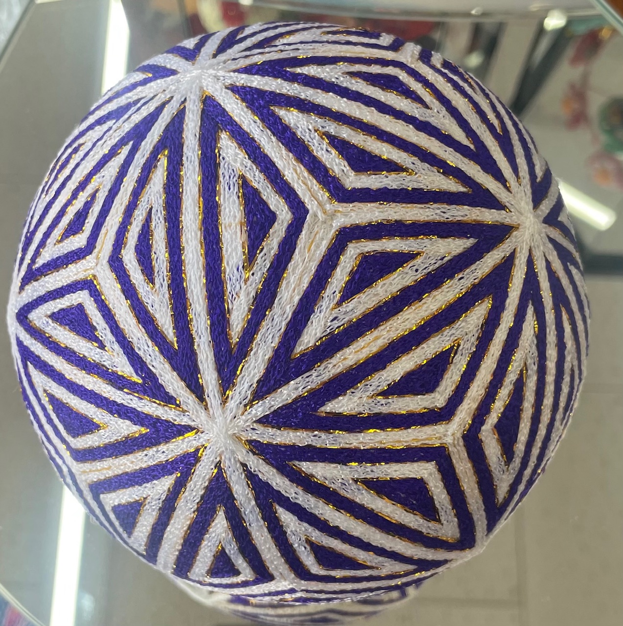 柳川まり大まり48cm 六つ花菊三菱帯 耐光堅牢染手作りてまり・さげもんつるし飾り細工手毬。