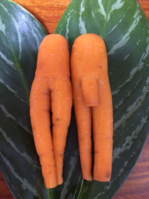 今日イチのおもしろいニンジン。鼻の大きなおじさんのこけしのようなニンジン。写真だと伝わりにくいかも。今日もおもしろ可愛いニンジン 達が入荷しました。形は規格外だけどオーガニックのニンジンです。どうぞご利用ください。西新福岡市オーガニック有機野菜。