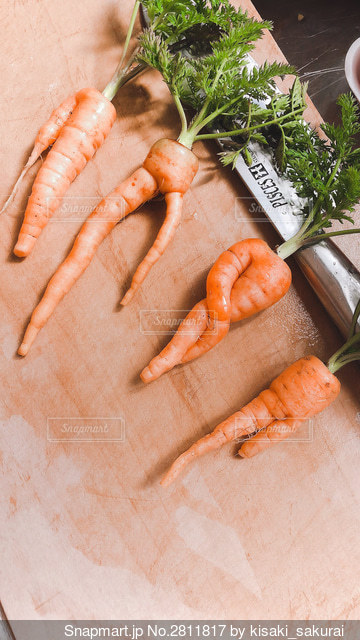 まな板の上の面白いにんじんの写真・画像素材-Snapmart スナップマート。
