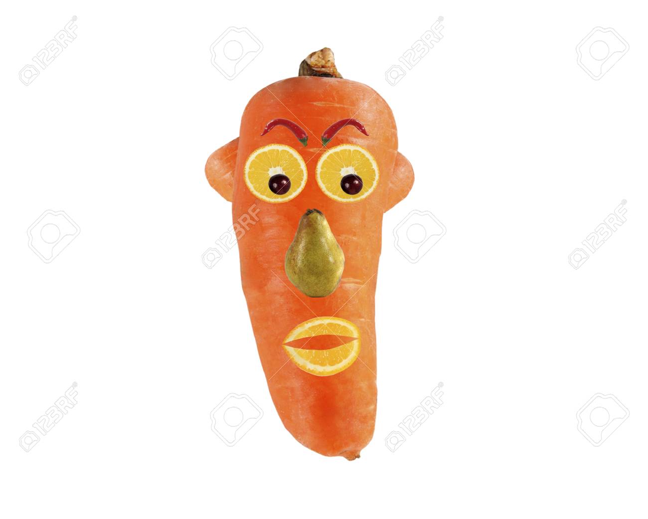 創作料理のコンセプトです。人参と果物で作られた面白い肖像画の写真素材・画像素材 Image 38973894。