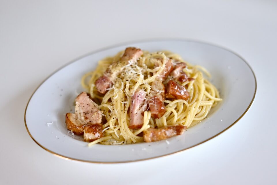 本日の気まぐれパスタ 『パンチェッタとペコリーノロマーノのカルボナーラ』西麻布の隠れ家的バー -bar mengelmoes。