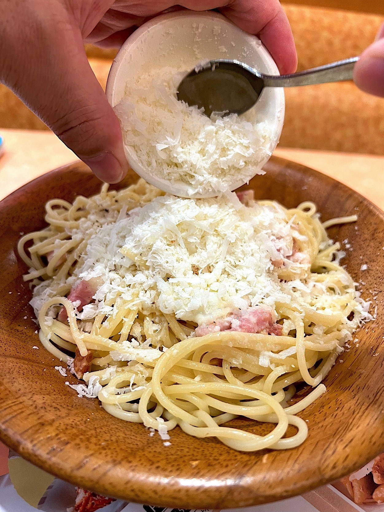 あと引くおいしさ♪ ペコリーノロマーノのカルボナーラ。
