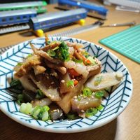 厚揚げとこんにゃくと豚バラ肉の味噌マヨ炒め。