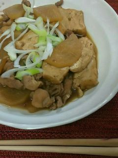 豚肉と大根と厚揚げと糸こんにゃくの煮物♪。
