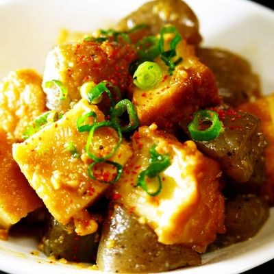 煮込みは5分!厚揚げとこんにゃくと豚肉の味噌煮レシピサイトNadia。