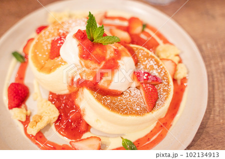 デザート 美味しそうないちごのパンケーキの写真素材102134913- PIXTA。