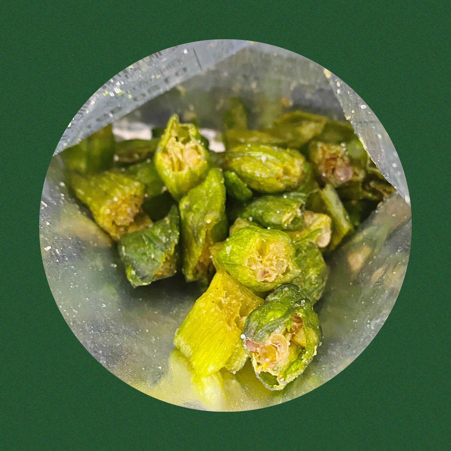 ちこえ on X: "ファミマで買った『おくらスナック』 カリカリなのに咀嚼するとネバネバも感じられる不思議な食感 塩味のみだから後味もちゃんとおくら で面白い。味はおくら以上でも以下でもない、おくら。ちょっとあっさりしている分は塩気でいい感じになっている。おくら。