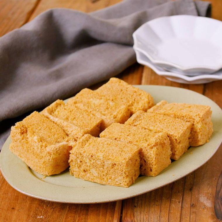 レンジで2分 モッチモチ!お豆腐と米粉で作る、きな粉蒸しパン グルテンフリー。