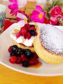 ふわふわ~♡ヨーグルトスフレパンケーキ♪。