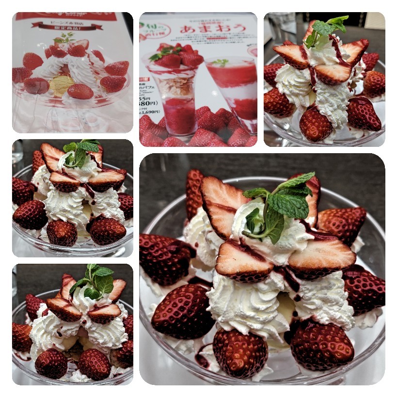 赤羽駅北改札口を出た正面にある銀座コージーコーナービーンズ赤羽店さん コージーコーナー全店で、いちごのパフェやあまおうのパフェのフェアを実施していますが、ビーンズ赤羽店限定メニューの通称「ストシャン」を発見モーニングタイム終了後の11:00入店 初訪店です。