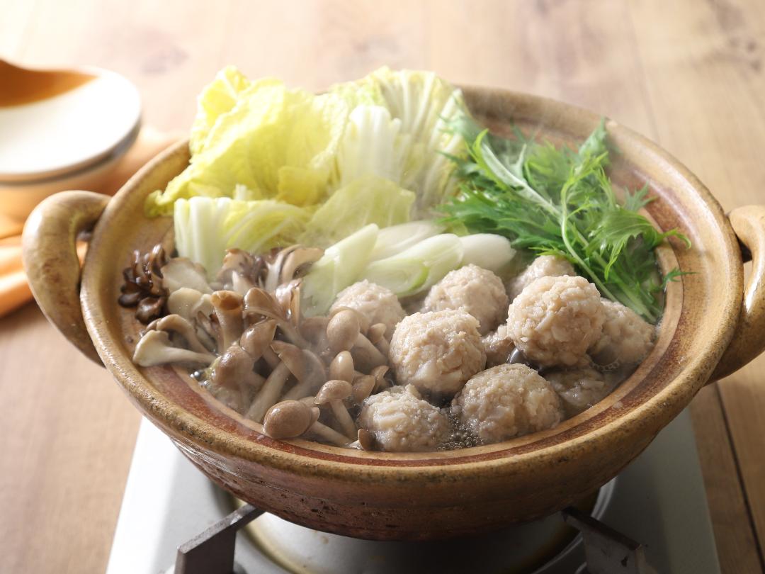 れんこん入りふわふわ肉だんご鍋。