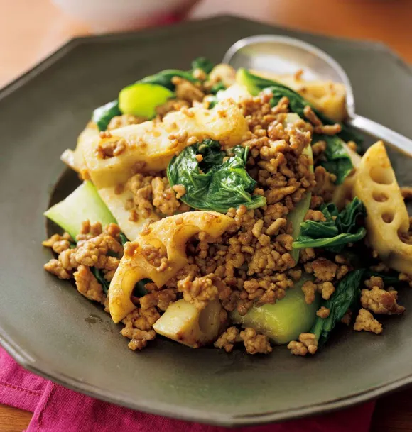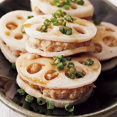 レンコン肉団子の梅照り焼き奥薗壽子のなべかまぺえじ。