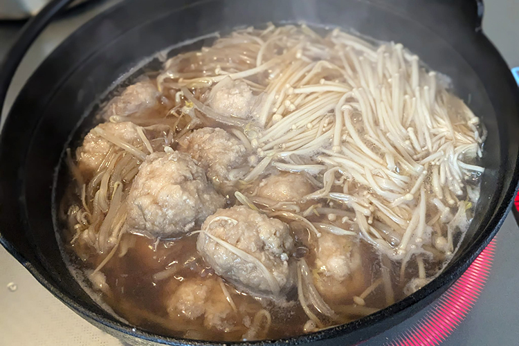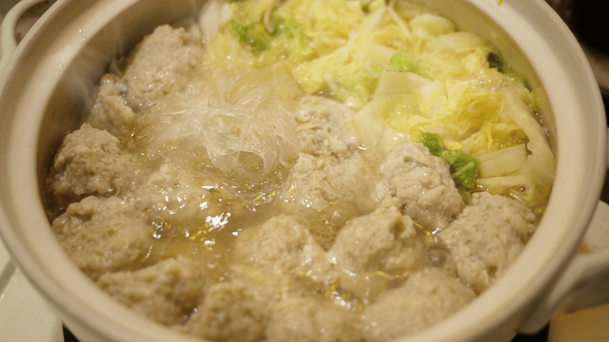 食物繊維たっぷり、すりおろしレンコン入り鶏団子鍋。原 一平太。
