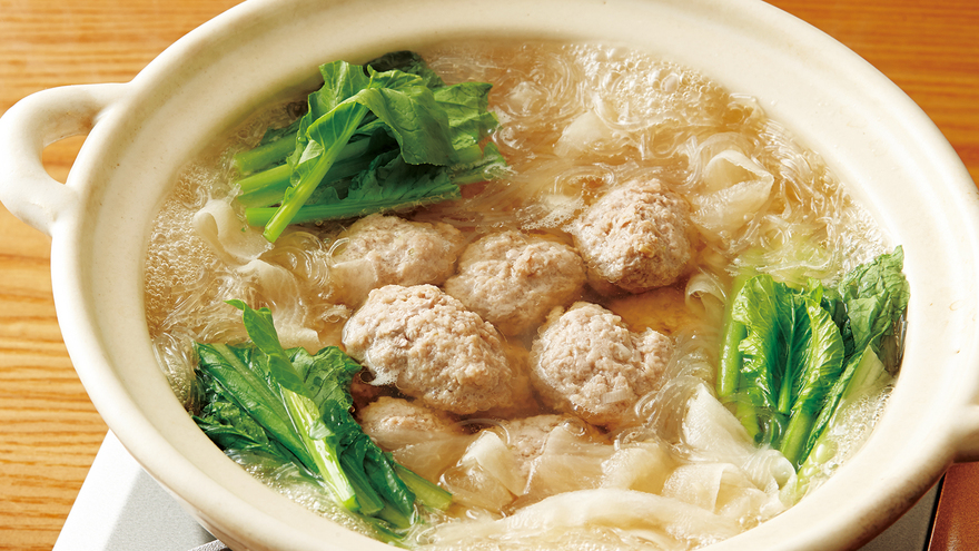 れんこん入りふわふわ肉だんご鍋のレシピ・作り方プロに教わるおいしいレシピ オレンジページ.net。