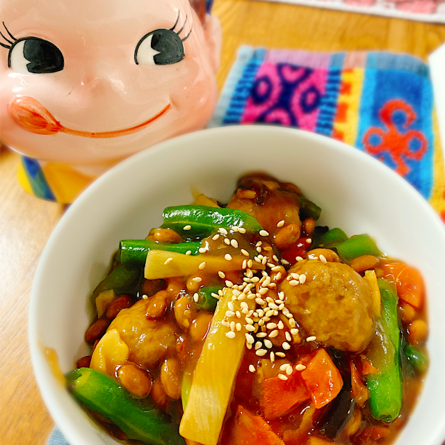 ご飯に合う!!『彩り野菜と肉団子の甘酢あん』。