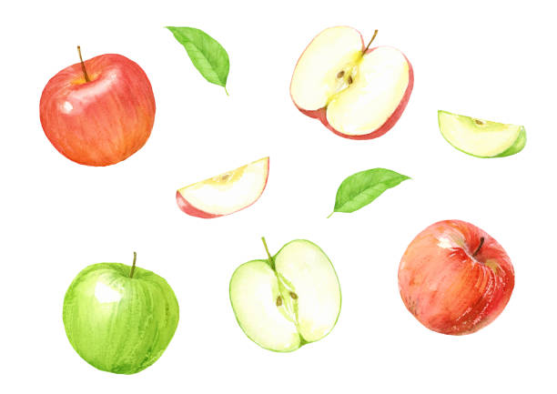 葉っぱ付きの蜜入りりんごのセット 手描き水彩イラスト素材集のイラスト素材FYI07524527ストックフォトの QleanMarket キュリンマーケット。