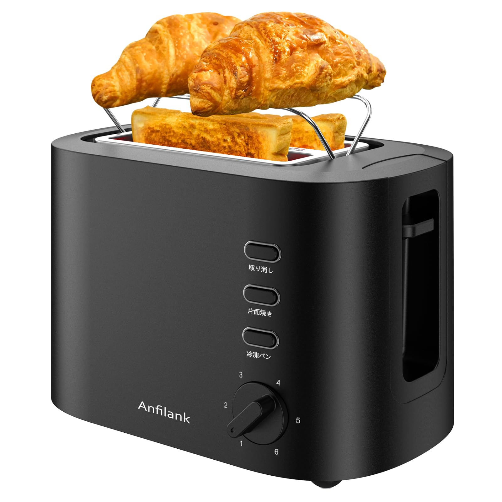 ポップアップトースター 7段階調節 2枚焼き トースト 解凍 NIT-3113。