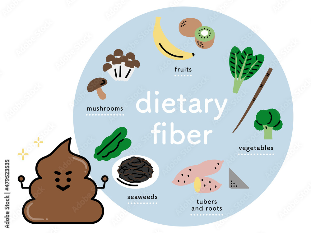 食物繊維を含む食べ物と 健康的なうんちのキャラクター 英語ver.の Stock ベクターAdobe Stock。