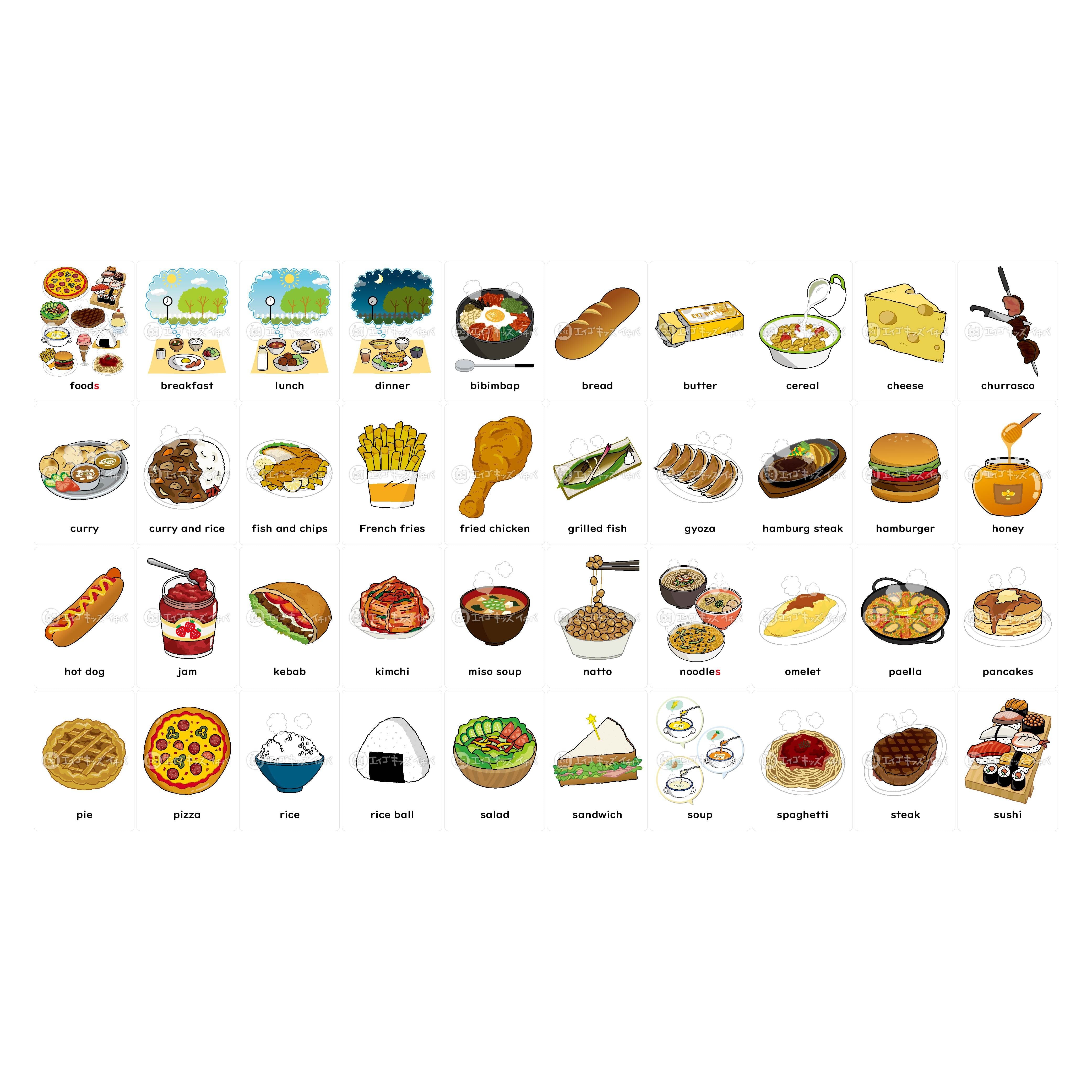食べ物英語カード – ブリッジぷりんと。