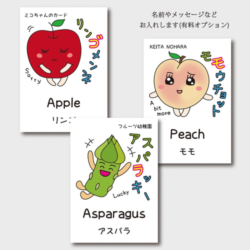 可愛い野菜とフルーツの日本語英語ベジフルカードL版サイズ12枚セット 送料込みおもちゃ・人形 fomhar 通販7389881Creema クリーマ。