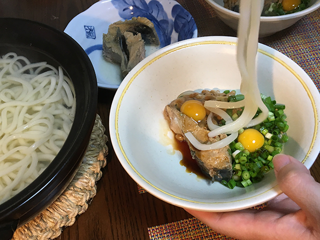 サバ納豆釜玉うどん-筋肉料理人連載フーディストノート。