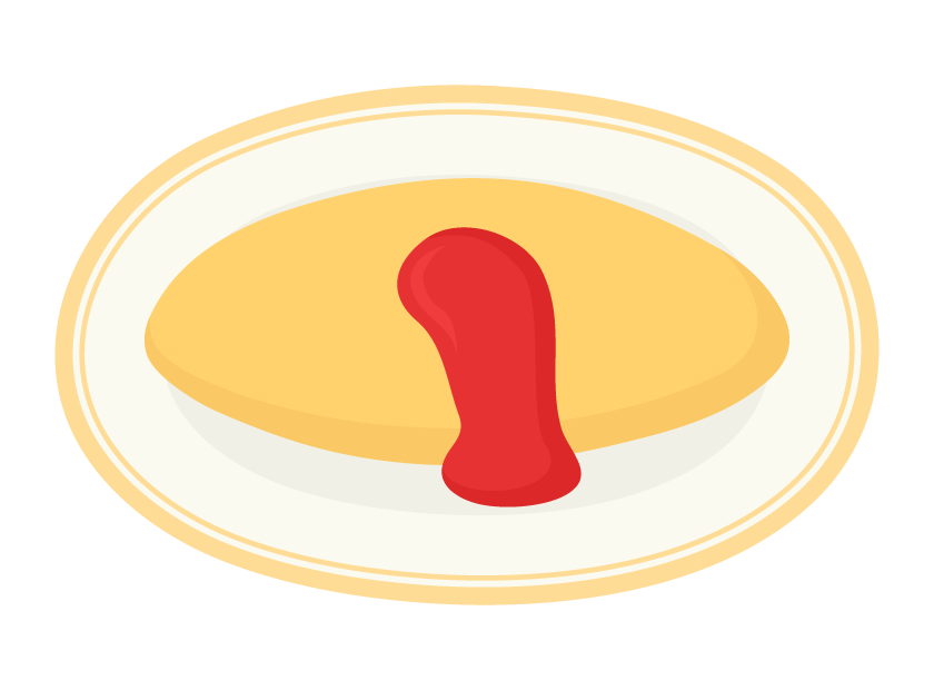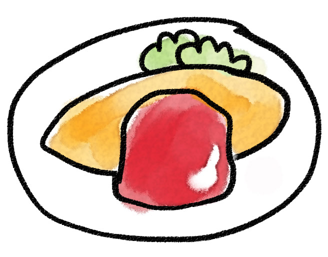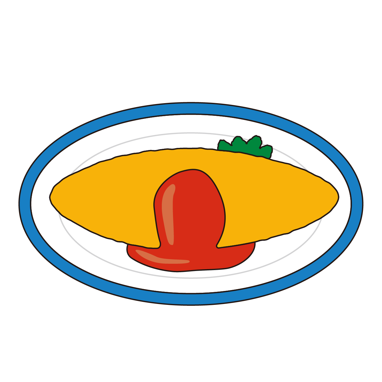 オムライス ケチャップイラストなら、小学校・幼稚園向け・保育園向けのかわいい無料イラストお試しフリー素材 カット がいっぱいの安心サイトへどうぞ。