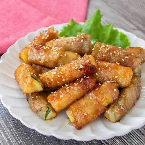 おいしくて感動!「ズッキーニとベーコンチーズのおつまみ春巻き」レシピ。
