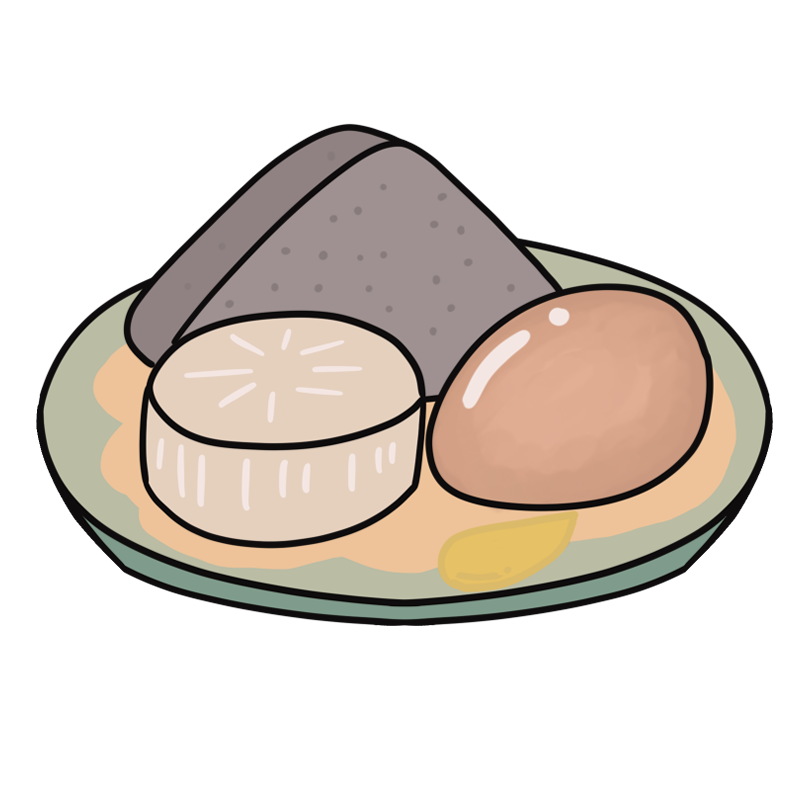 おでん こんにゃく・さつま揚げ・大根 のイラストイラスト無料・かわいいテンプレート。