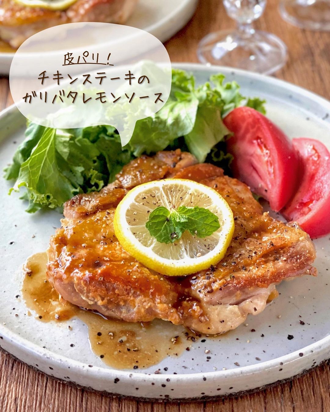 パリパリ!チキンステーキ。ガーリックバタ醤油ソース レシピ・作り方 by キリンU - 楽天レシピ。