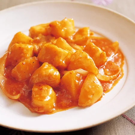 辛すぎない。じゃがいもでかさ増し。 たらとじゃがいものチリソース長田知恵 つき 料理研究家。