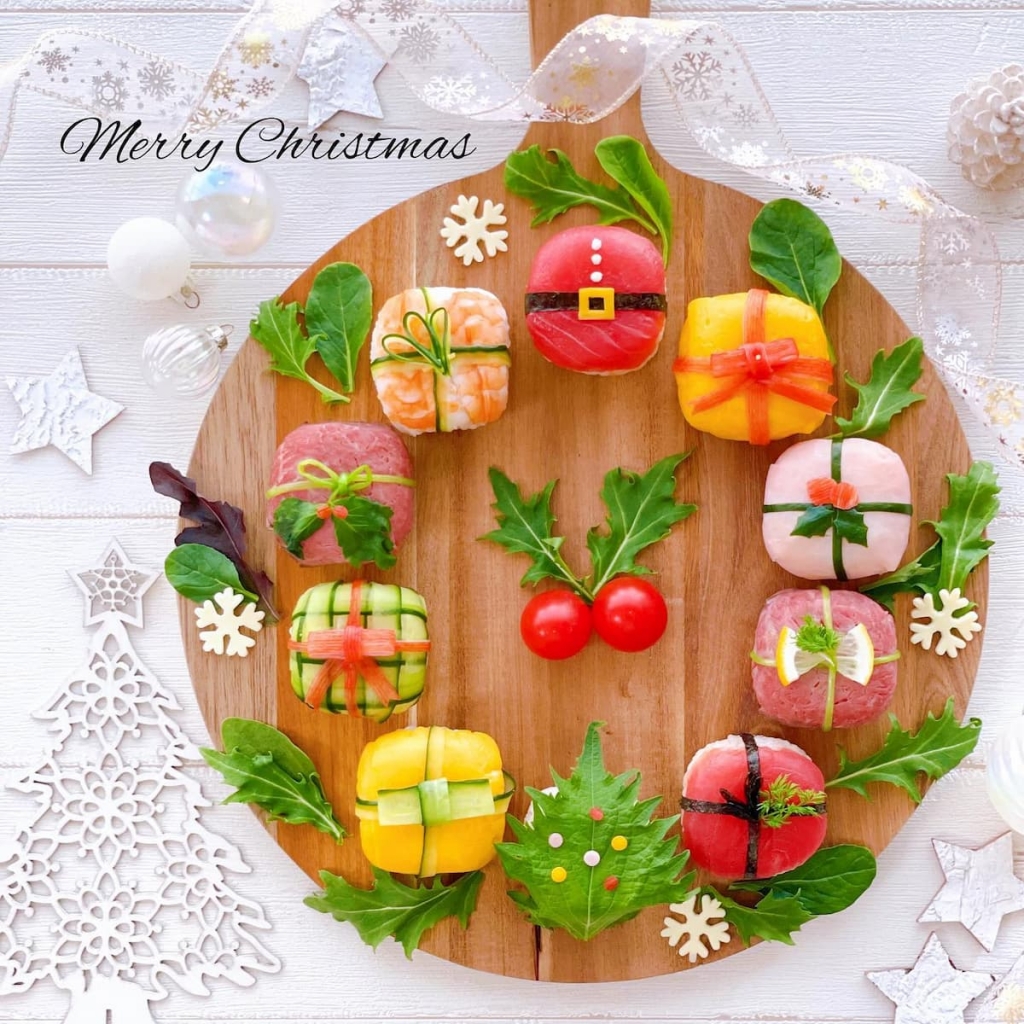 おうちクリスマス料理 🎄クリスマスリース手まり寿司かわいくて一口サイズで食べやすい和食パーティーおもてなしお好みの具材で作れます 皆で楽しく食べられるお正月もおすすめ 簡単レシピ。