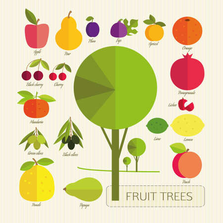 さまざまな国から木になる果物と条件付き果樹。それぞれの果実が署名されました。ガーデニング。のイラスト素材・ベクター Image 41548370。