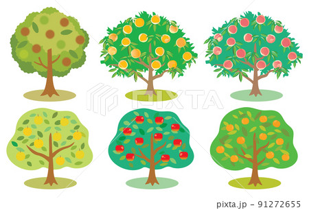 主線のある果物の木のセットイラストのイラスト素材101136446- PIXTA。
