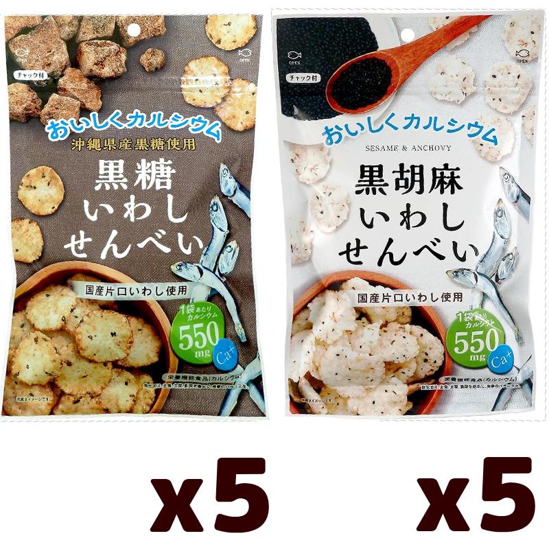 岡田屋製菓 いわしせんべい 黒胡麻 黒糖 50〜55g 2種各5袋セット 計10袋カルシウム お菓子。