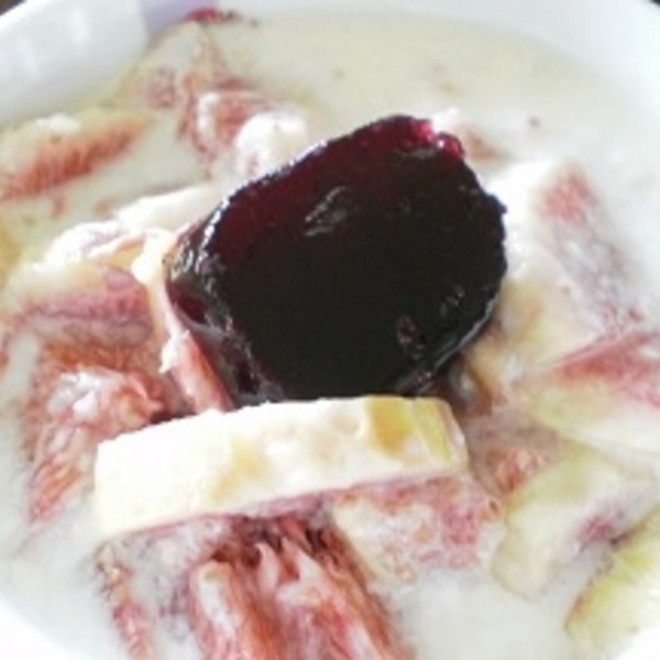 材料2つ豆乳ドライいちじくスイーツ イチジクプリン動画レシピTurkish Fig pudding with soy milk.ほっこりおうちごはん。