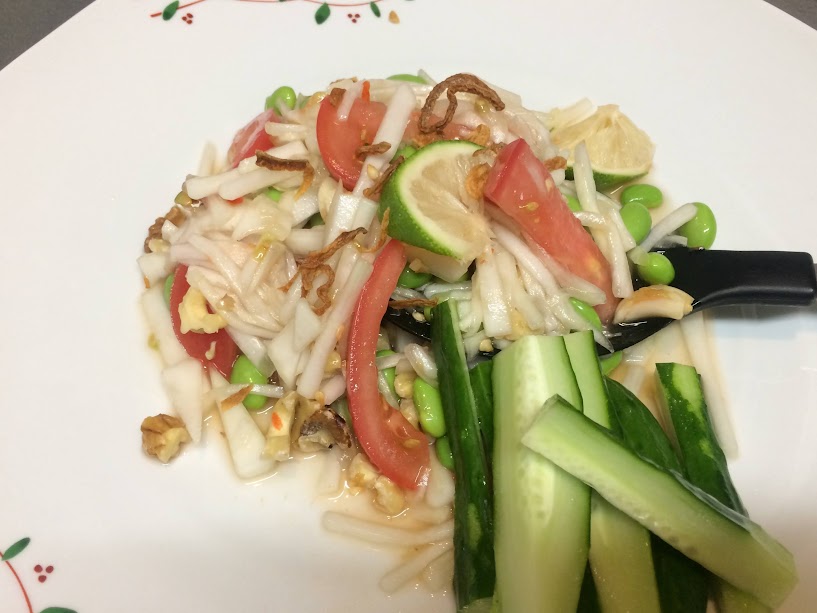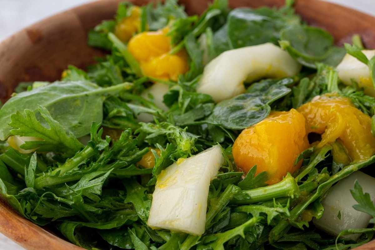 マンゴー、マクワウリ、春菊、ホウレン草のサラダmasasus。