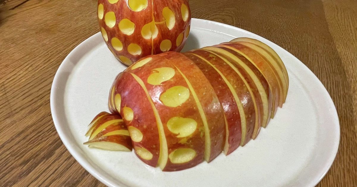 りんごの市松模様と木の葉切りの作り方!簡単な飾り切りで可愛く変身♪知楽ラボ。