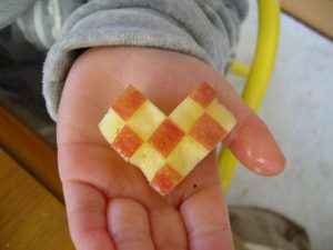 りんごの市松模様と木の葉切りの作り方!簡単な飾り切りで可愛く変身♪。