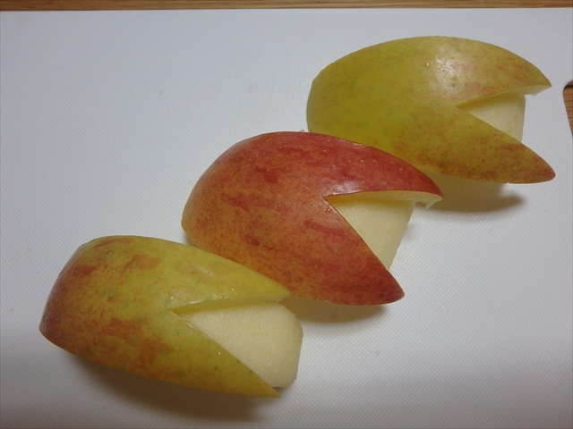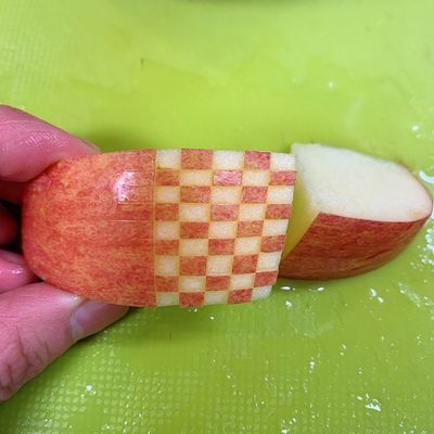 お弁当に!簡単♪市松模様のりんご飾り切り。