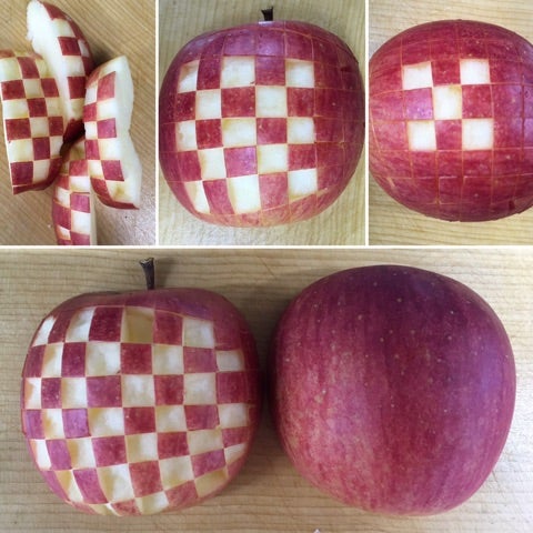 飾り切り! 簡単なりんごの市松模様のオリジナルの作りかた。