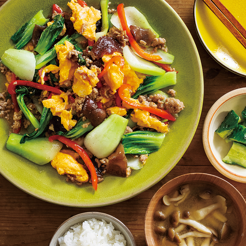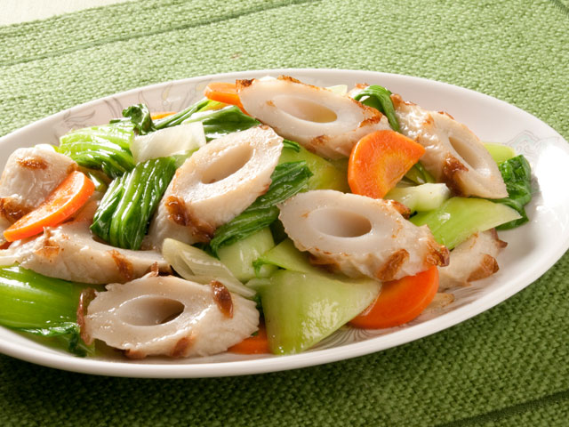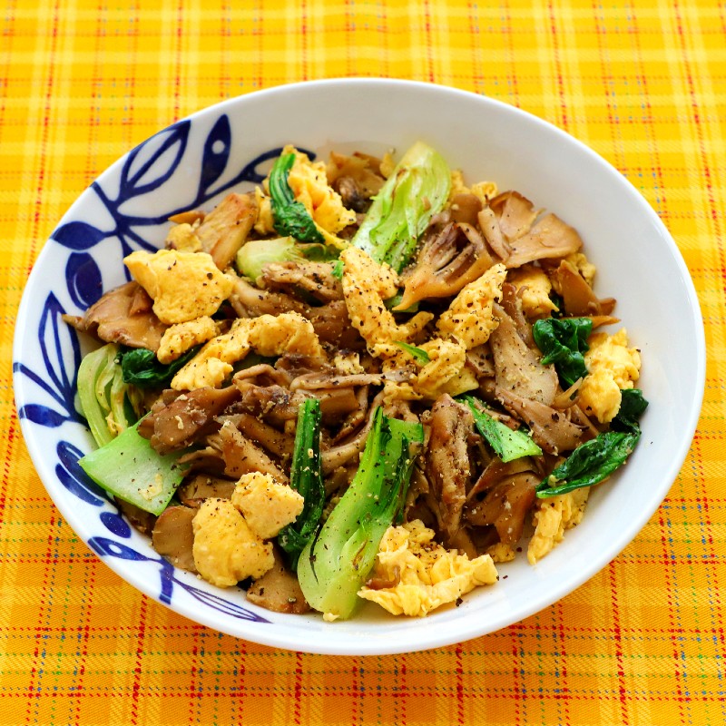 まいたけとチンゲン菜のふんわり玉子炒め - レシピ集一正蒲鉾株式会社。