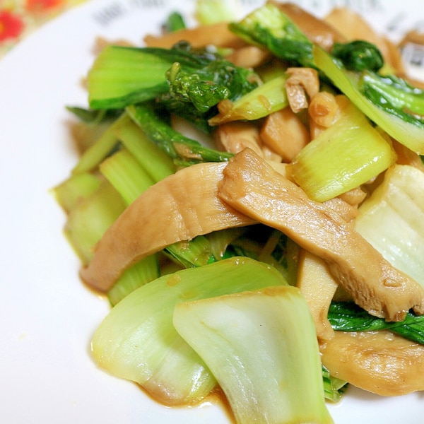 チンゲン菜とエリンギのガーリック醤油炒め。
