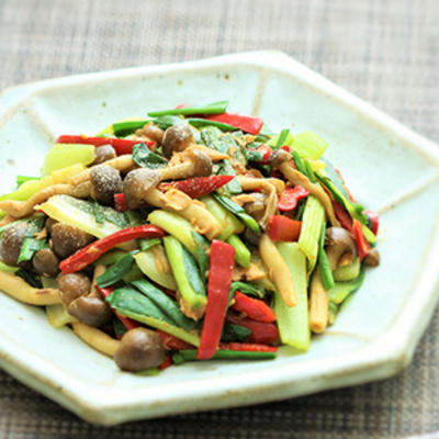 チンゲン菜ときのこの中華風野菜炒めカマダレシピ鎌田醤油 かまだしょうゆ 公式通販サイト。