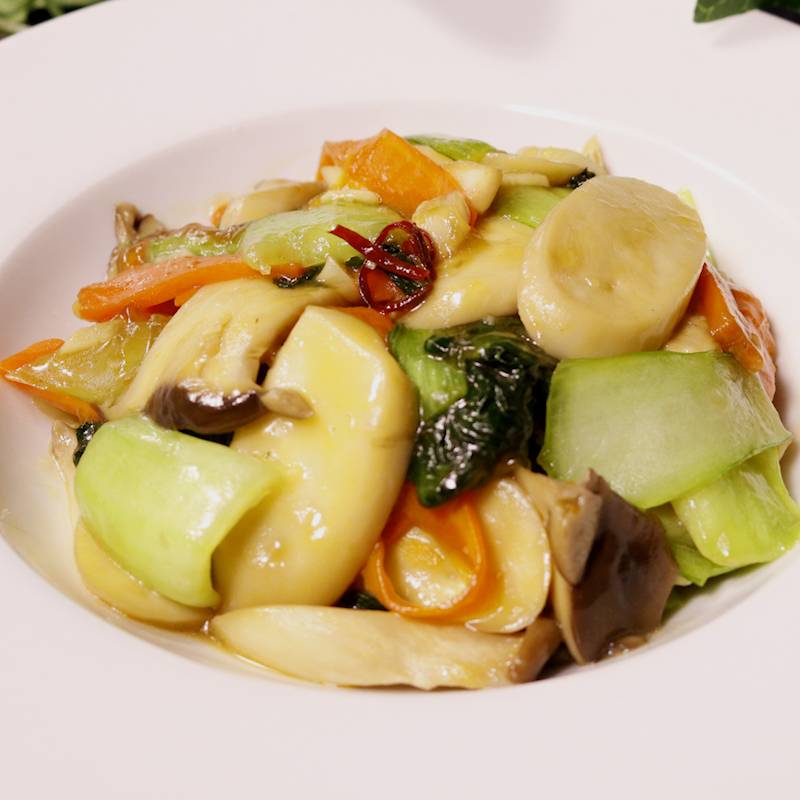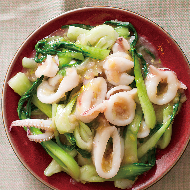 いかとチンゲン菜のねぎ塩とろみ炒め。
