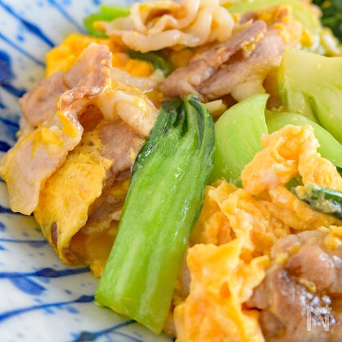 下味冷凍を活用!豚とチンゲン菜の卵炒め。
