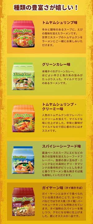 YumYum インスタントヌードル トムヤムシュリンプ味 5P×3袋 : よろずやマルシェYahoo!ショッピング店 - 通販 -Yahoo!ショッピング。
