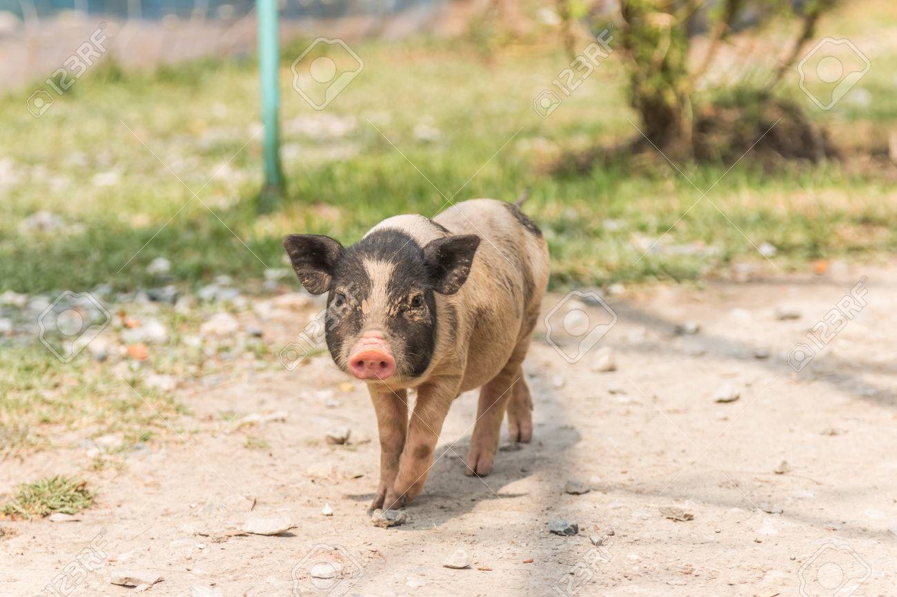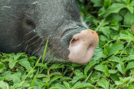 ベトナム豚は、晴れた日若いブタに草を食べるの写真素材・画像素材 Image 13936842。