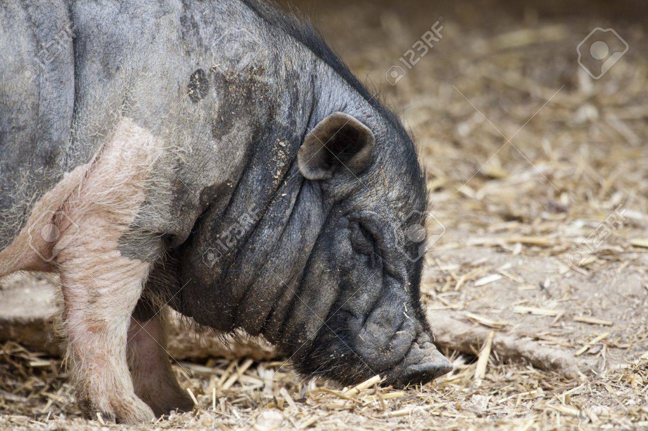 いくつか乾燥した植物を食べて非常に脂肪黒豚のビューを閉じます。の写真素材・画像素材 Image 7920344。