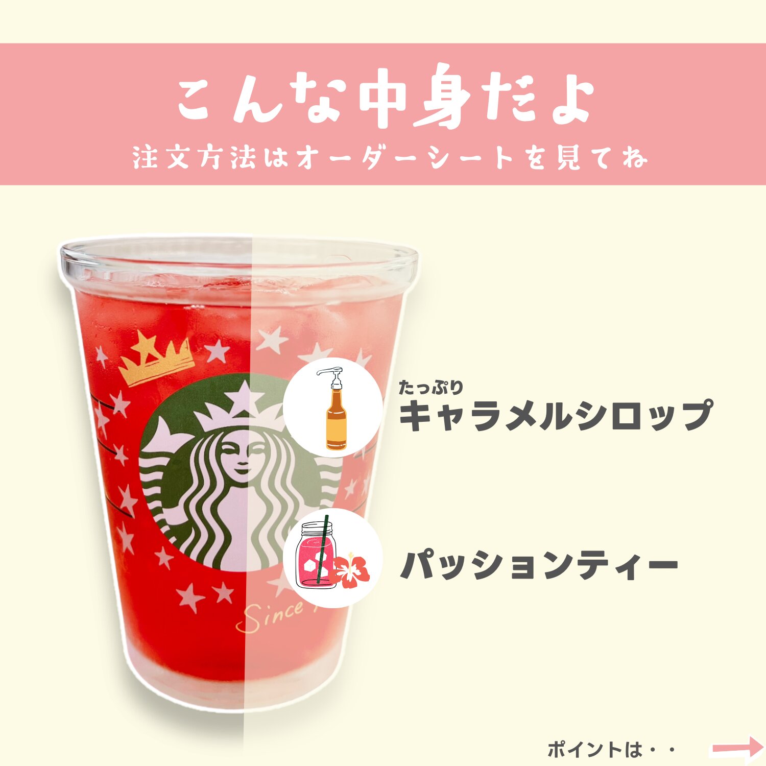 スタバで楽しむパッションティーの可愛いカスタム。