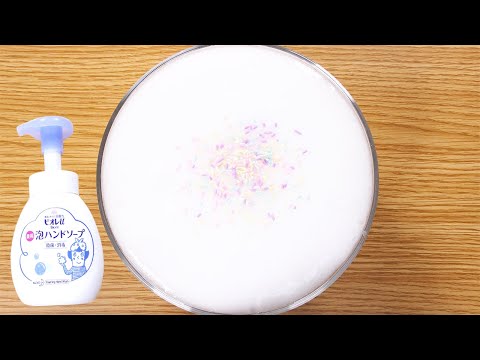 スライム作り方 泡ハンドソープでふわふわスライムの作り方🥣スフレチーズケーキみたいにふっわふわ♪ ASMR音フェチ How to makeslime슬라임 - YouTube。
